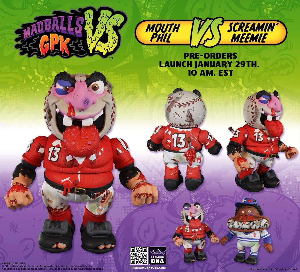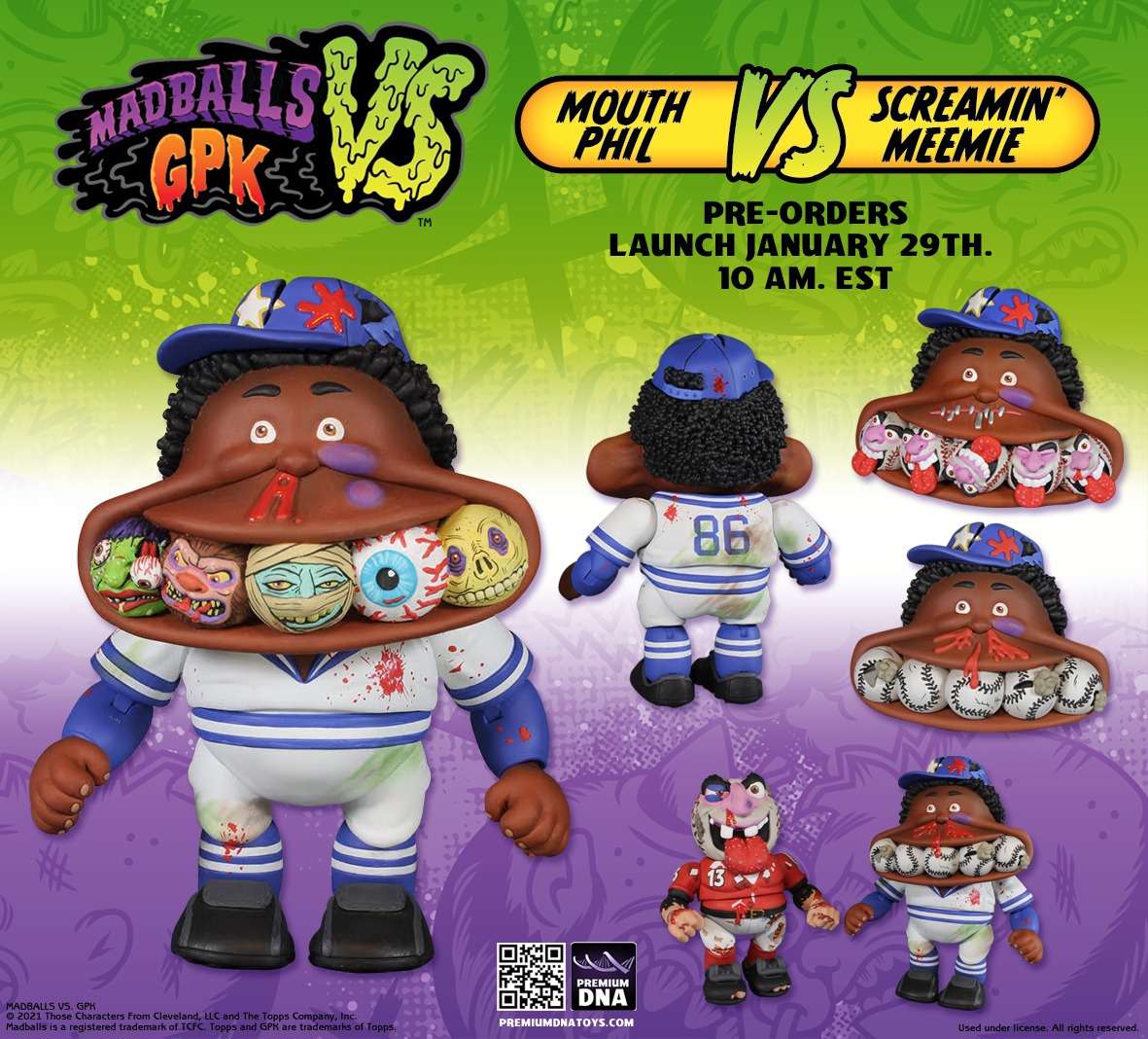 Baseball turns to BaseBRAWL with the new Madballs vs GPK Screemin’ Meemie/Mouth Phil battle pack by Premium DNA Toys!