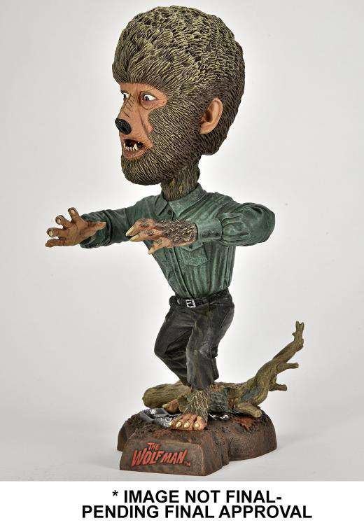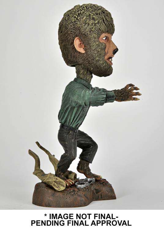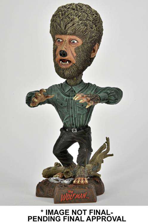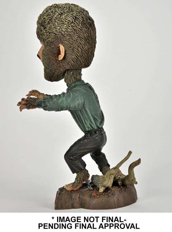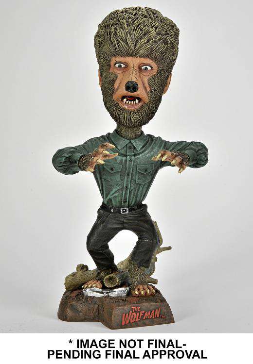 Your favorite silver screen Universal Monsters are now available as Head Knockers! Carefully sculpted and vibrantly colored, these classic ghouls are a welcome addition to any horror hound’s collection. This hand-painted resin Wolf Man bobble head stands 8" inches tall and is waiting to adorn your shelf. Comes in collectible packaging with spot gloss finish.
