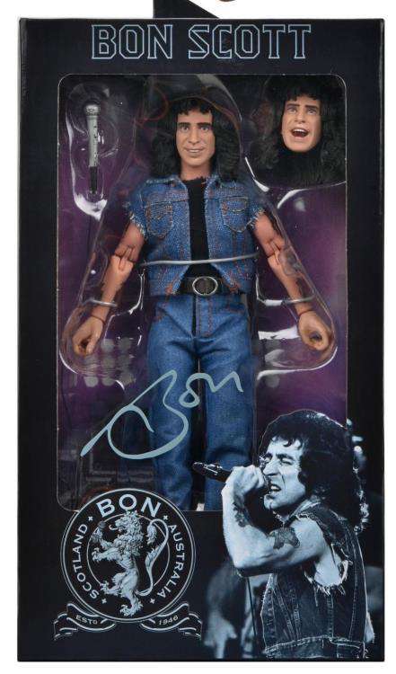 If rock singers were judged on a scale of 1 to 10, Bon Scott turns the dial to 11. One of the most influential front men of all time, Bon Scott’s high-voltage vocals and rock ‘n roll lifestyle set the bar for a generation of aspiring musicians. This fully articulated and extremely tattooed action figure is based on Bon Scott’s appearance in AC/DC’s “Highway to Hell” music video and stands 8 inches tall. Comes with microphone and alternate head. Window box packaging.