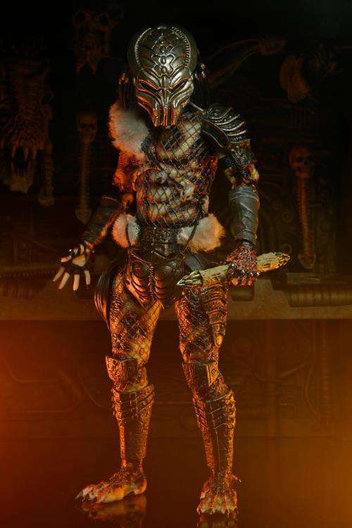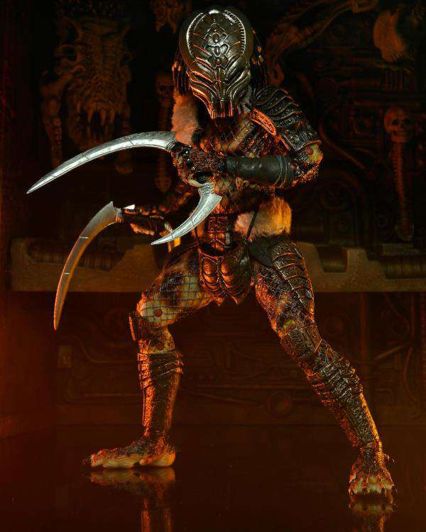 Predator 2, the action-packed sequel to the original movie, moved the hunt to Los Angeles and revealed a Lost Tribe of alien hunters! NECA brings more of the Lost Tribe to Ultimate form with Snake Predator, a deadly assassin from the Serpent Clan specializing in close combat. The 7” scale Ultimate Snake Predator action figure features over 30 points of articulation, and comes with masked head, unmasked head, throwing discs, skull and spine, extended and collapsed spears, and his trademark weapons, two double-bladed hand scythes. Comes in special 30th Anniversary Ultimate-style packaging with foil accents.