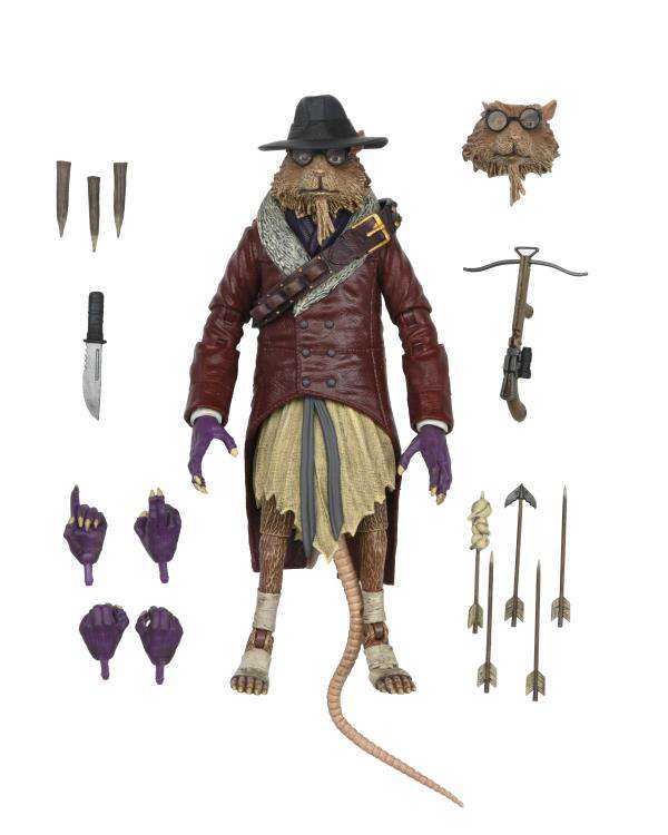 Trouble with monsters? Call the rat with the hat! NECA’s newest release in its Universal Monsters x Teenage Mutant Ninja Turtles action figure line is Splinter! This continuing line pays tribute to the world’s most famous turtles and Universal’s icons of horror. Splinter as Van Helsing reimagines the Turtles’ sensei as the famous vampire hunter, and he’s equipped with the tools for taming terrors! This 7” scale figure includes crossbow, arrows, quiver, knife, stakes, interchangeable heads and swappable hands. Comes in collector-friendly window box packaging with opening flap.
