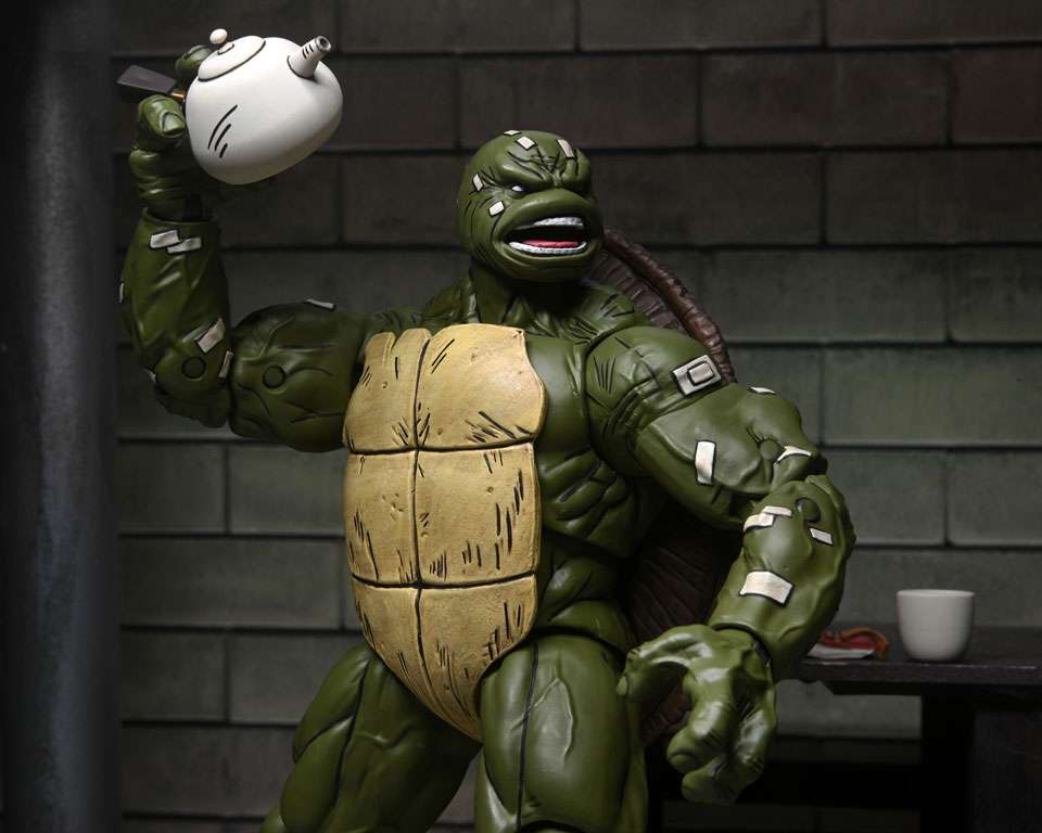 From the Teenage Mutant Ninja Turtles comic book series, The Last Ronin! In a future NYC far different than the one we know today, a lone surviving Turtle goes on a seemingly hopeless mission to obtain justice for his fallen family and friends. Standing in 7-inch scale, this battle-damaged Last Ronin action figure features an all-new sculpture and multiple customizing display options. It includes interchangeable arms, alternate heads, extra hands, all-new Splinter's diary, tea pot, and cup. Comes in collector-friendly window box packaging with opening flap featuring a custom illustration by The Last Ronin artist Ben Bishop.