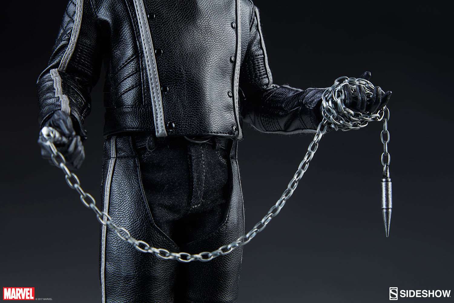 Ghost Rider is also sold complete with a steel dart-tipped chain for ensnaring evil-doers and dispensing his own hellish brand of justice.