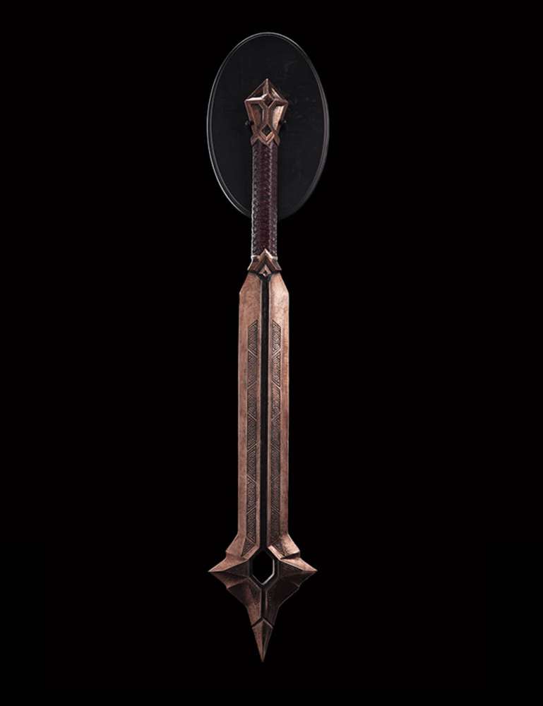 Balin's Mace was created for the film by the artists at Weta Workshop. Incredibly tough, yet safer than a sharpened steel blade, it has been finished to a standard that can confidently be displayed in 3D, high resolution, at 48 frames per second in the finished movie.